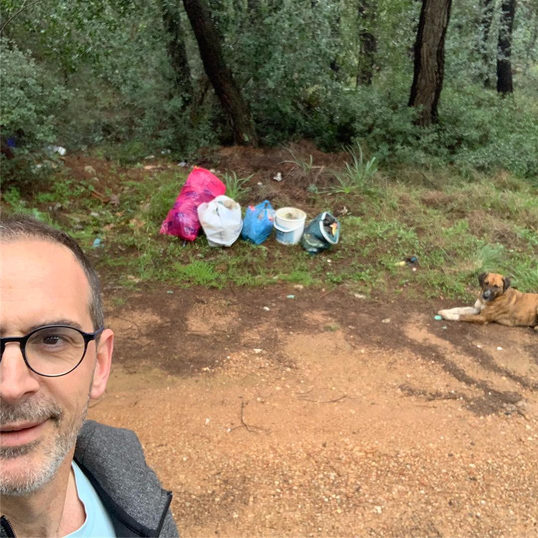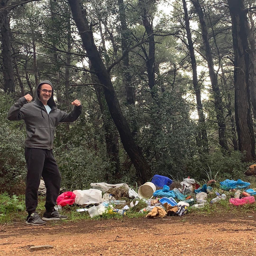 «Κάποιοι συνάνθρωποί μας κάνουν μεγάλη προσπάθεια για να αφήσουν το αποτύπωμα τους οπουδήποτε. Με τον αδέσποτο φίλο μου σήμερα το πρωί, καθαρίσαμε αυτό το μικρό κομμάτι δάσους (γίνεται πανικός γενικά) και οφείλω να ομολογήσω πως είμαι πολύ χαρούμενος διότι όσοι προτιμούν τα δάση για τις ερωτικές συνευρέσεις τους, χρησιμοποιούν προφυλακτικά τα οποία πετάνε βέβαια έξω από το παράθυρο. Προφυλάσσουν τον εαυτό τους, αλλά όχι τη φύση»…έγραψε ο ηθοποιός κάτω από τις φωτογραφίες